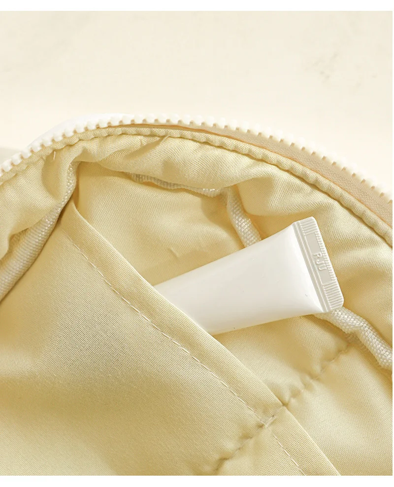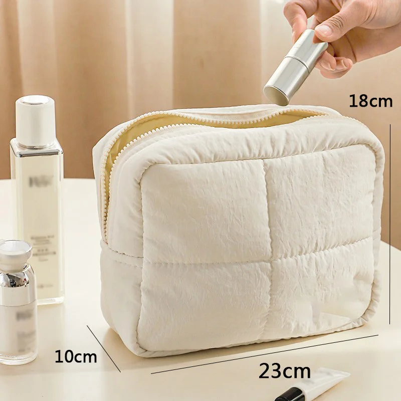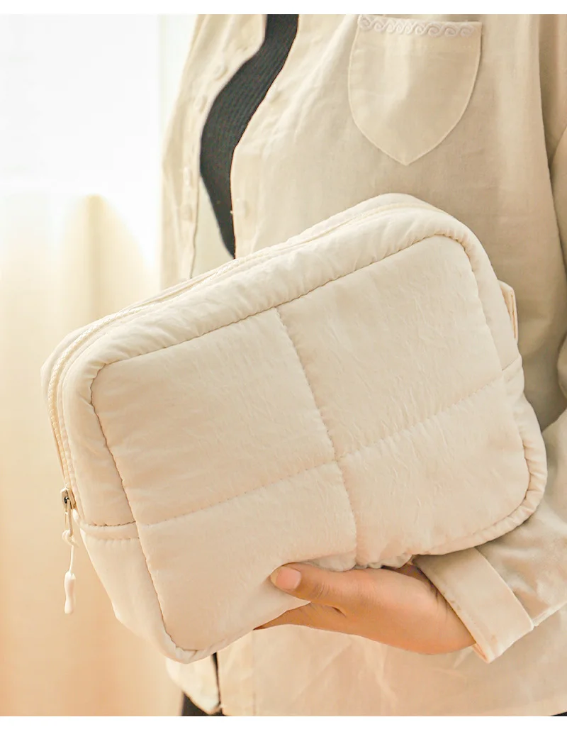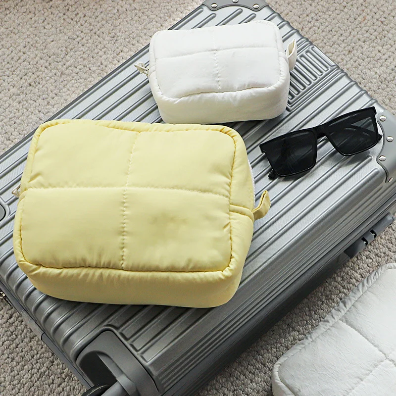 Custom Logo Polyester Puffer Cosmetic Storage Bag Waterproof Toiletry Organizer Bag Portable Quilted Makeup Bag for Travel
