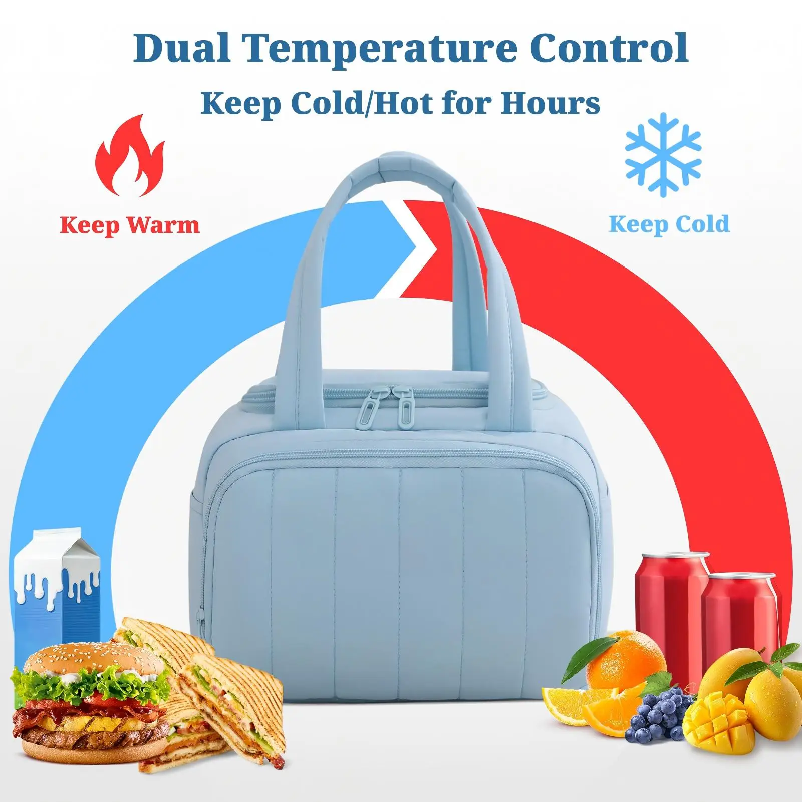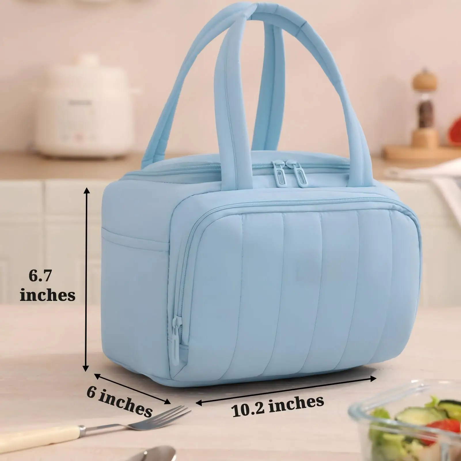 Insulated Polyester Lunch Bag for Women 7L Lightweight Puffy Padded Waterproof Shoulder Bag Reusable Work Picnic Camping Travel
