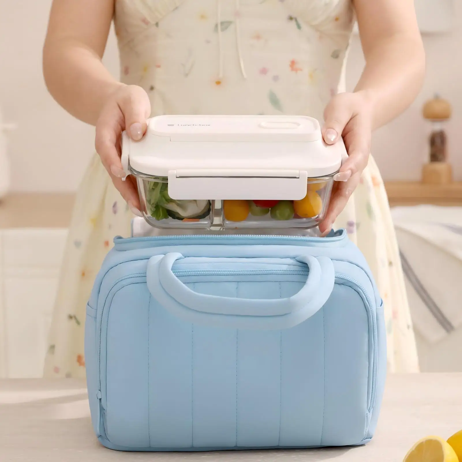 Insulated Polyester Lunch Bag for Women 7L Lightweight Puffy Padded Waterproof Shoulder Bag Reusable Work Picnic Camping Travel