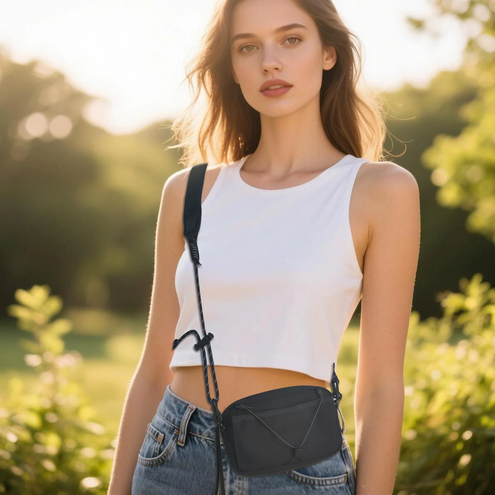 New Design Lady Fashion Nylon Zipper Multiple Function Outdoor Leisure Lightweight Water-resistant Sling Bag Cross Body Pack