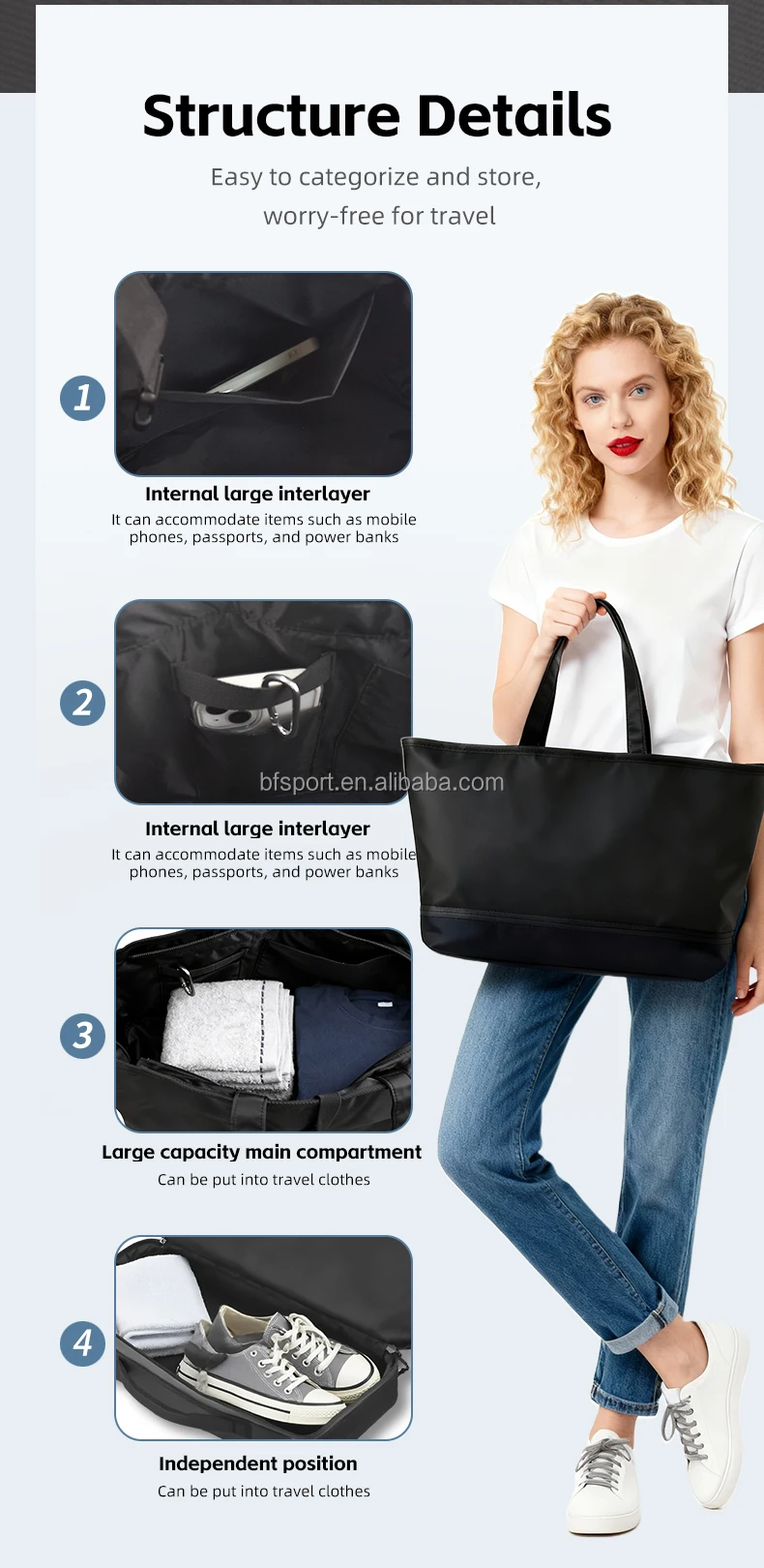 New Trendy Summer Large Capacity Water-resistant Zipper Multi-Purpose Outdoor Beach Travel Women Duffle Tote Bag Bottom Shoe